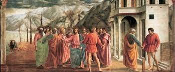 Мазаччо. Чудо со статиром. Капелла Бранкаччи. Церковь Санта Мария дель Кроче
